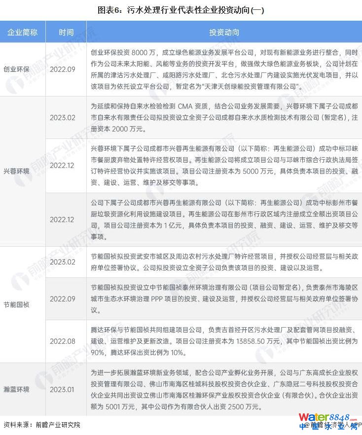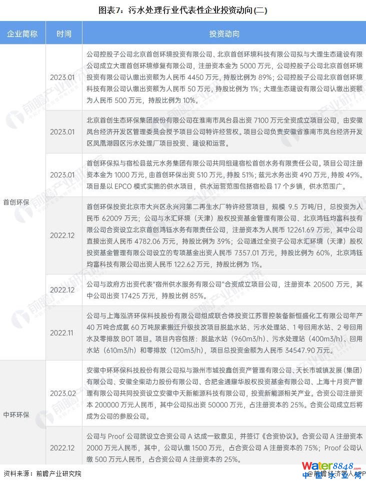 污水處理行業(yè)代表性企業(yè)最新投資布局