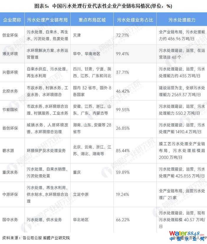 污水處理行業(yè)代表性企業(yè)產(chǎn)業(yè)鏈布局情況