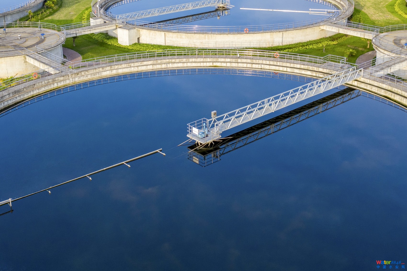 再生水廠的二沉池,主要作用是對(duì)經(jīng)生化池處理后的污水進(jìn)行沉淀。