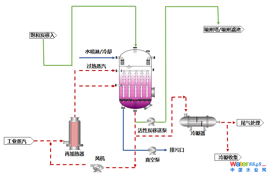 含吸附+使用無氧過熱蒸汽提高活性炭(焦)吸附性能的解吸活化系統(tǒng)