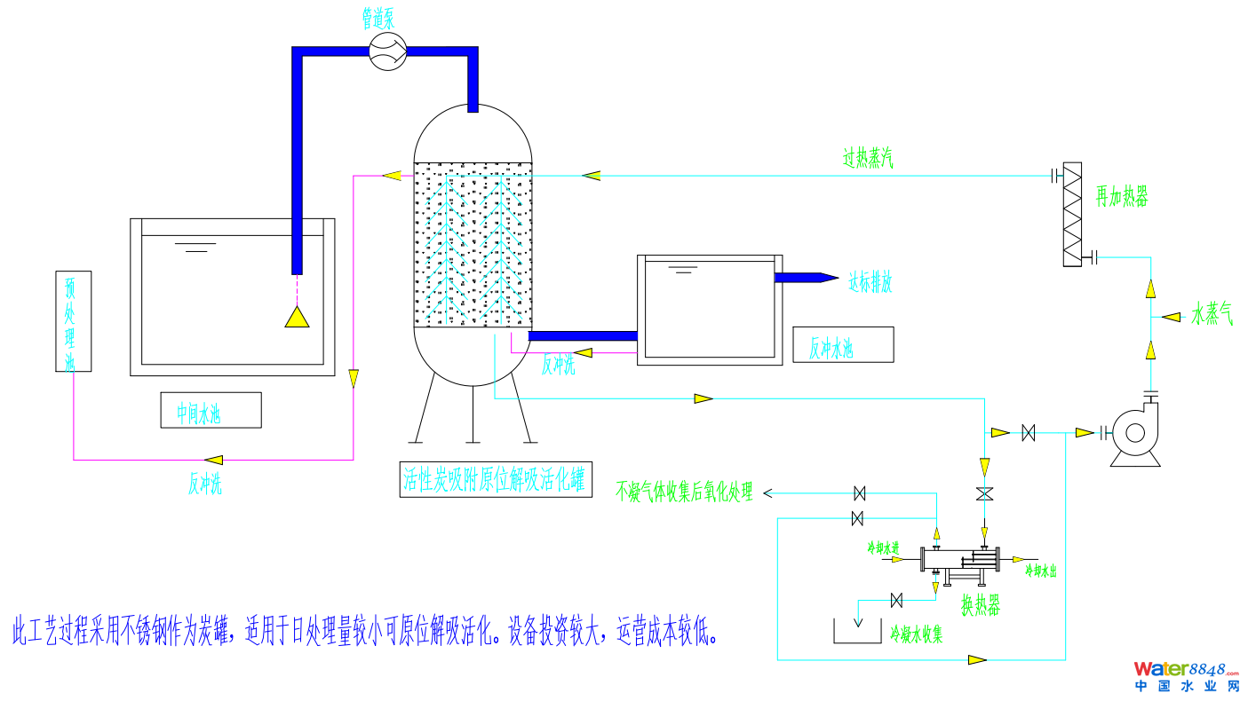 含吸附, 反沖洗多合一系統(tǒng)+使用無氧過熱蒸汽提高活性炭(焦)吸附性能的解吸活化系統(tǒng)