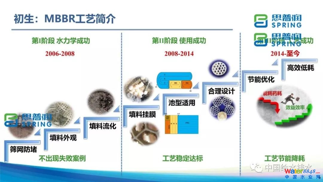 最后為大家介紹一下思普潤公司,思普潤成立于2006年,12年來專注于MBBR的工藝研發(fā)和工程推廣,目前公司已經(jīng)做了一百多個項目,從一級A到準IV類水,思普潤也是隨著中國的排水逐漸發(fā)展起來的,思普潤是MBBR工藝的推廣和守護者。