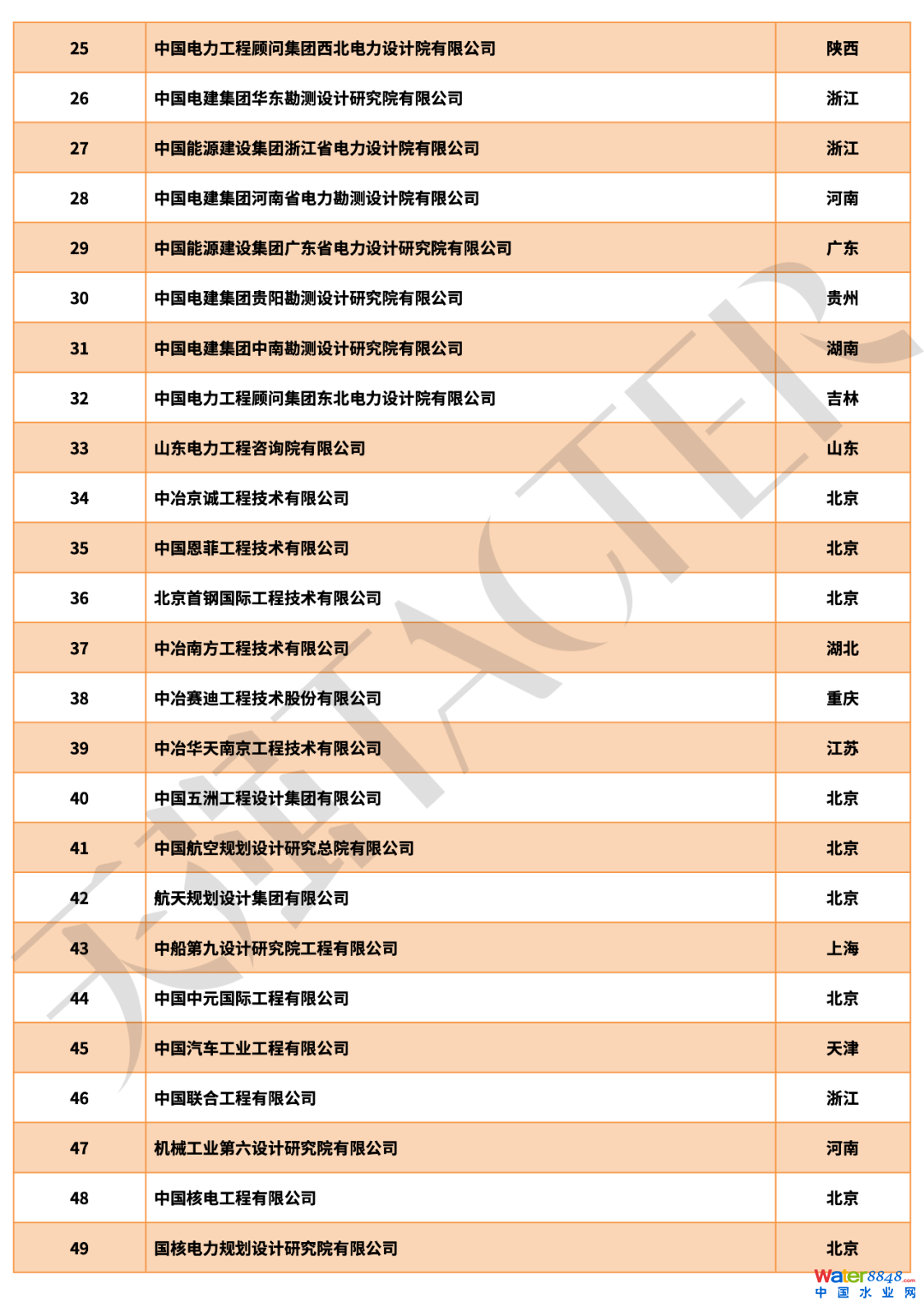 以下9家綜甲院,前6家為中國電力建設股份有限公司的全資子公司,后3家為中國電力建設股份有限公司的控股子公司。