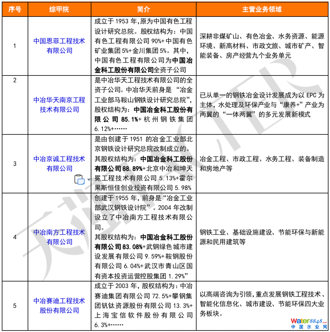 以下5家綜甲院均為中冶科工股份有限公司控股的股權(quán)多元化公司。