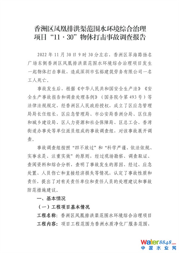 致1人死亡 珠海市香洲區(qū)鳳凰排洪渠范圍水環(huán)境綜合治理項(xiàng)目“11·30”物體打擊事故調(diào)查報(bào)告