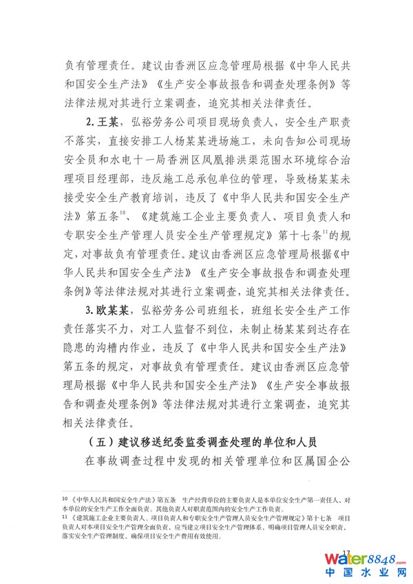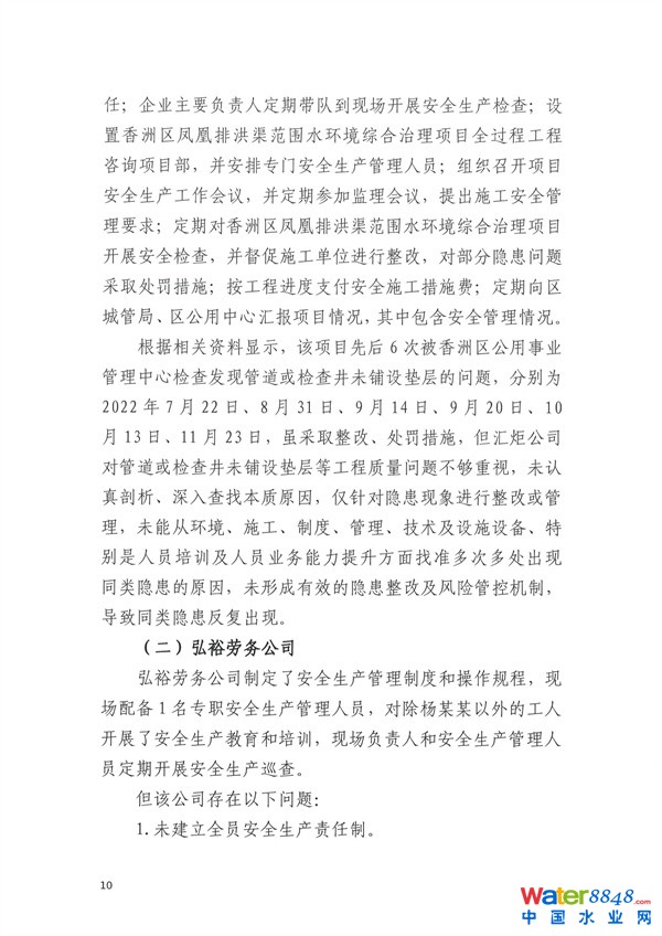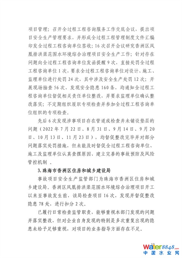 核心提示:致1人死亡 珠海市香洲區(qū)鳳凰排洪渠范圍水環(huán)境綜合治理項(xiàng)目“11·30”物體打擊事故調(diào)查報(bào)告 2023-04-10 08:56來(lái)源:珠海市香洲區(qū)應(yīng)急管理局