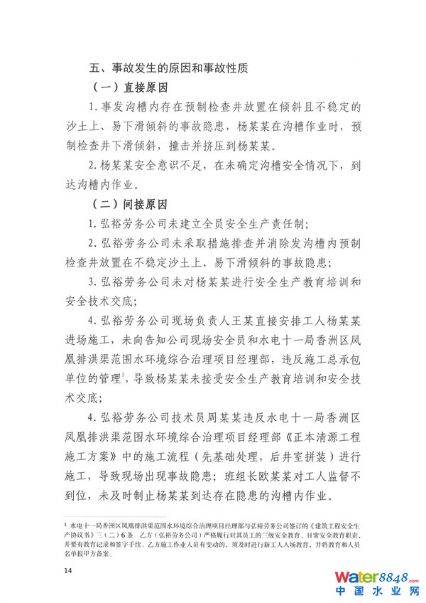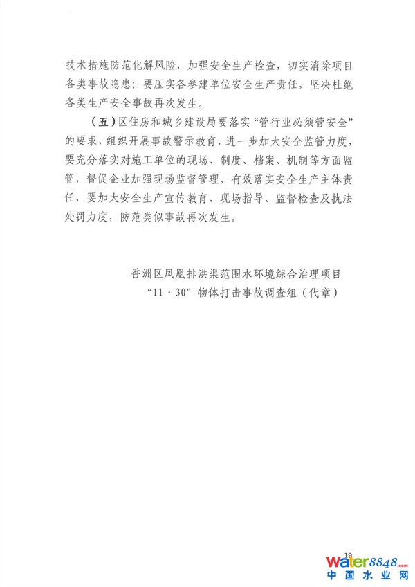 近日,珠海市香洲區(qū)應(yīng)急管理局發(fā)布《香洲區(qū)鳳凰排洪渠范圍水環(huán)境綜合治理項(xiàng)目“11·30”物體打擊事故調(diào)查報(bào)告》。