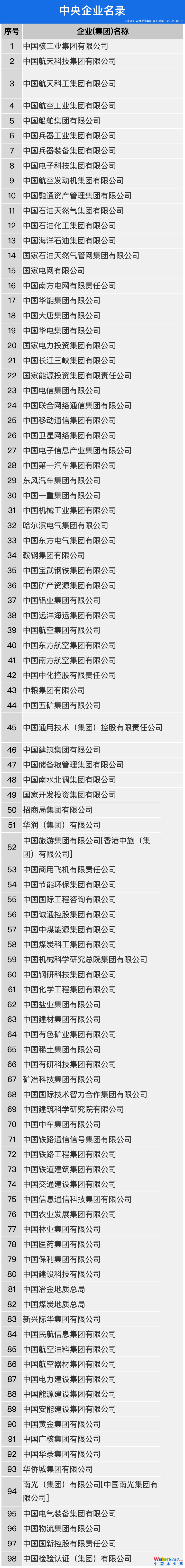 98家中央企業(yè)名錄