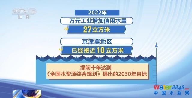 我國從“十二五”開始施行“最嚴格的水資源管理制度”。2021年,全國萬元工業(yè)增加值用水量較2012年下降55%,2022年萬元工業(yè)增加值用水量27立方米,京津冀地區(qū)已經(jīng)接近10立方米,提前十年達到《全國水資源綜合規(guī)劃》提出的2030年目標。