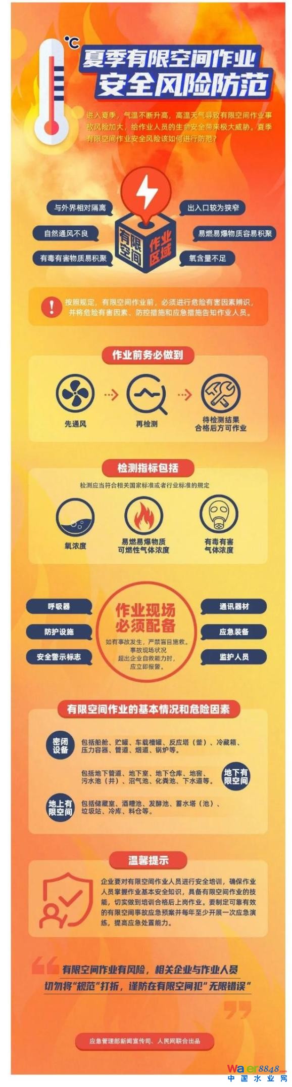 進入夏季,氣溫不斷升高,高溫天氣導致有限空間作業(yè)事故風險加大,各類有毒有害氣體容易蒸發(fā)聚集,給作業(yè)人員的生命安全帶來極大威脅!