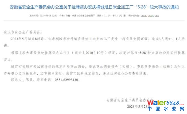 核心提示:掛牌督辦!3死1傷!夏季有限空間作業(yè)應注意什么? 樂亭發(fā)布 關(guān)注 2023-05-30 16:21 河北 來源:澎湃新聞·澎湃號·政務 字號 5月28日8時許 安徽省安慶市桐城市 金神鎮(zhèn)香鋪旭日米業(yè)加工廠 發(fā)生一起有限空間事故 造成3人死亡、1人受傷 當日22時許 安徽省應急管理廳發(fā)布通知稱 安徽省安委會決定對這起 事故查處實行掛牌督辦 據(jù)不完全統(tǒng)計 今年以來 發(fā)生在有限空間的 7起較大事故 僅5月以來
