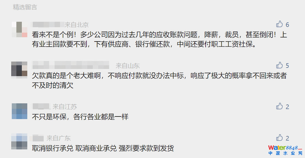 ▼“環(huán)保圈”讀者關(guān)于應(yīng)收賬款問題的評論