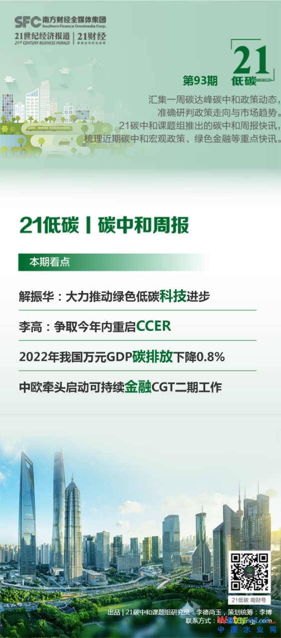 本期看點:解振華:大力推動綠色低碳科技進步;李高:爭取今年內重啟CCER;2022年我國萬元GDP碳排放下降0.8%;中歐牽頭啟動可持續(xù)金融CGT二期工作。