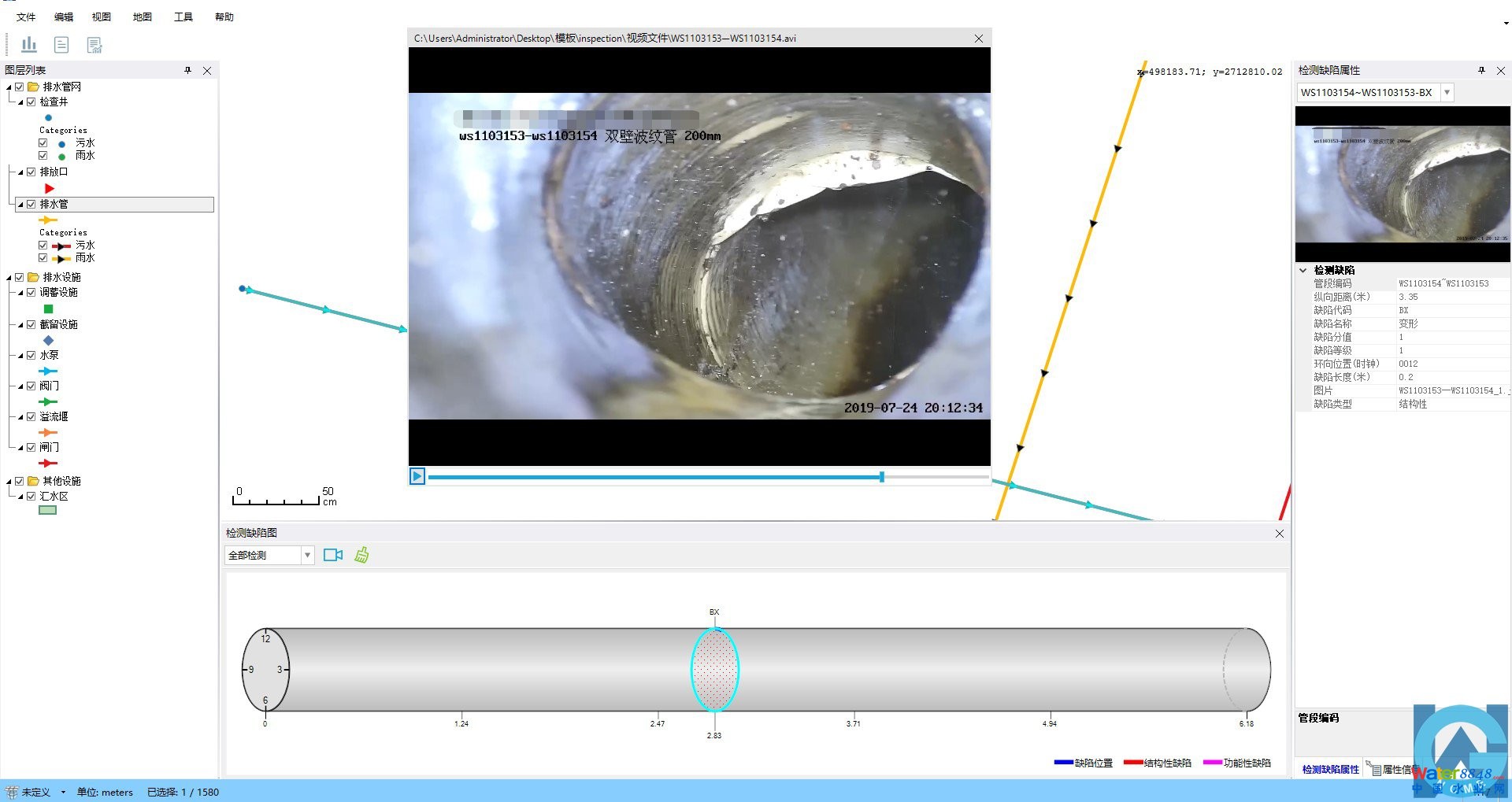 借助物聯(lián)感知、視頻內(nèi)窺、仿真模擬等技術,圍繞“全面排查、周期檢測”的技術要求,利用MESURVEY數(shù)據(jù)管理軟件,進行初步的管網(wǎng)數(shù)據(jù)梳理,理清現(xiàn)狀管網(wǎng)邏輯關系,制定排查計劃,進行人工排查、在線監(jiān)測、視頻檢測及模擬分析等工作,分析污水系統(tǒng)設施狀況,評估管網(wǎng)瓶頸,識別管網(wǎng)問題,為污水系統(tǒng)提質(zhì)增效提供數(shù)據(jù)支撐。