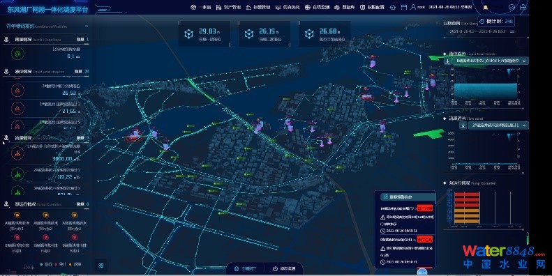 為解決東風湖水體黑臭的問題,積極響應習總書記對于長江大保護提出的“共抓大保護、不搞大開發(fā)”的要求,本項目以實現(xiàn)東風湖流域排水設施精細化運維與聯(lián)調(diào)聯(lián)控為目標,打造一個精細化、規(guī)范化、智慧化的“源-廠-網(wǎng)-湖”一體化的信息化東風湖總控中心。中心依托于機理模型、混合調(diào)度模型、上位控制系統(tǒng)及上位總控平臺四大功能,集模型耦合、三維展示及數(shù)據(jù)管理等功能于一體,從而通過東風湖“廠-網(wǎng)-湖”一體化調(diào)度平臺形成完善的流域級污水處理信息化綜合管理解決方案,有效保障東風湖流域水安全,優(yōu)化其水環(huán)境。該項目應用國內(nèi)首款集“源-網(wǎng)-廠-湖”全要素模擬于一體的“城市水系統(tǒng)控制仿真模型(Simuwater®)” 實現(xiàn)城市水務設施智能聯(lián)控,提高城市水務建設智能化管理。