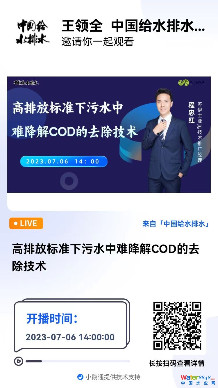今天直播的主題為: 高排放標準下污水中難降解COD的去除技術(shù)