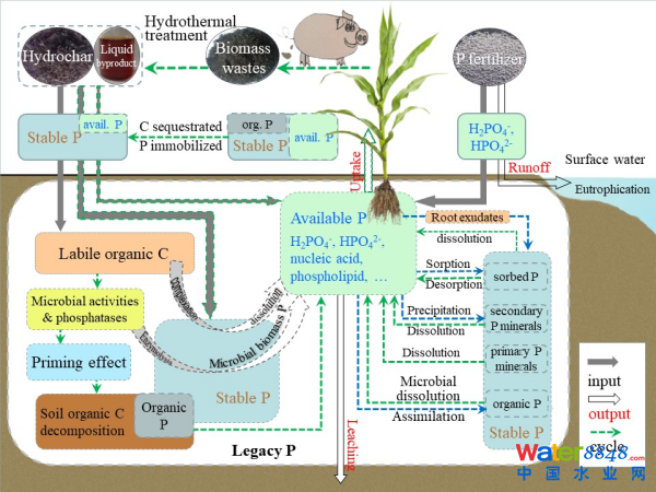 圖3. 土壤遺留磷循環(huán)及水熱炭的潛在影響作用機(jī)制