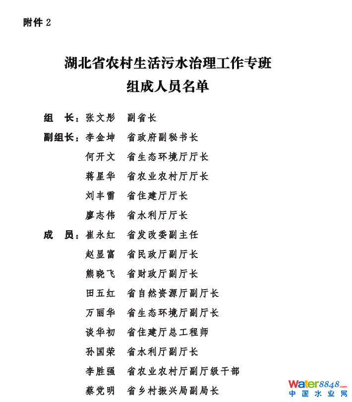 2.湖北省農(nóng)村生活污水治理工作專(zhuān)班組成人員名單