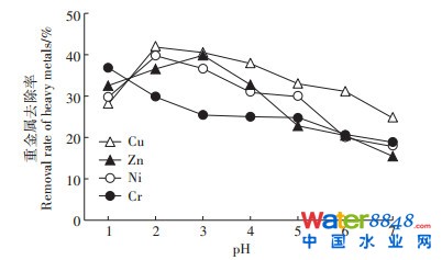 2.2 介質(zhì)pH對(duì)剩余污泥中重金屬去除的影響