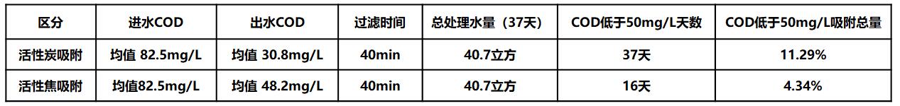2. 從吸附總量來(lái)看若處理相同體量的原水,保持相同的單位時(shí)間內(nèi)的處理量,為了達(dá)到接近的出水COD,活性焦體積必須是活性炭的2.6倍以上,即活性焦的過(guò)濾接觸時(shí)間必須是活性炭的2.6倍以上。