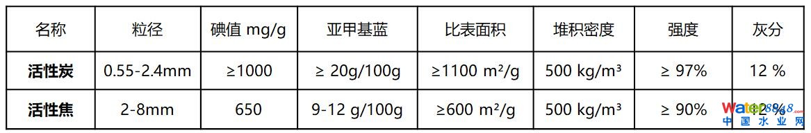 上表數(shù)據(jù)為采用相同體積的活性炭、活性焦對(duì)同一原水進(jìn)行吸附處理,得出以下結(jié)果:
