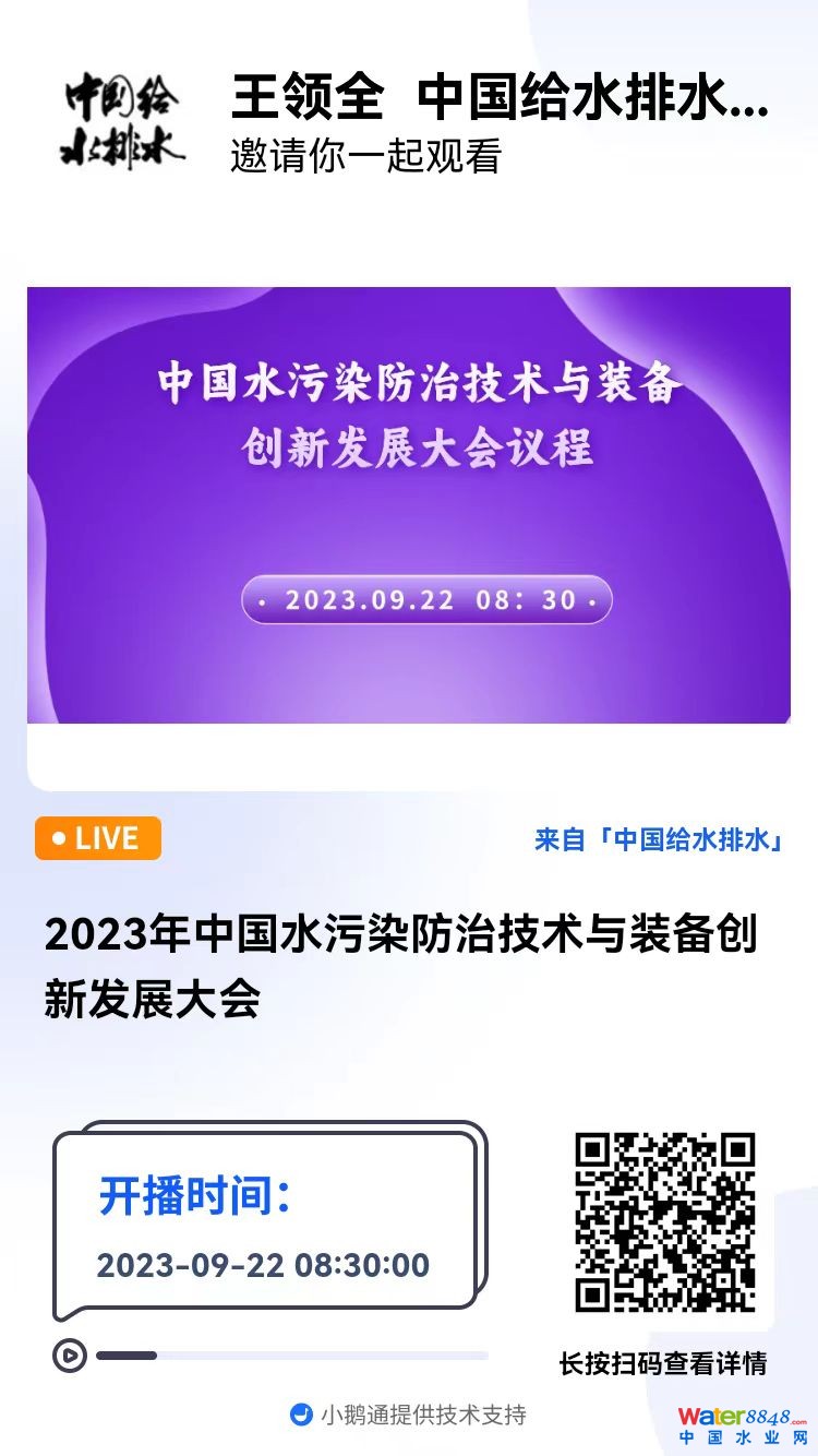 2023年中國(guó)水污染防治技術(shù)與裝備創(chuàng)新發(fā)展大會(huì) 直播時(shí)間:2023.09.22(周五) 08:30—17:50 2023-09-22 08:30:00 開始