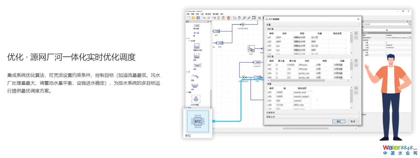 城市水系統(tǒng)控制仿真軟件(Simuwater®)是立足于中國市政華北總院多年水環(huán)境治理經(jīng)驗(yàn)和國內(nèi)外排水系統(tǒng)模擬發(fā)展最新技術(shù)和理念開發(fā)的分布式水文、水力和水質(zhì)模型,是國內(nèi)首個實(shí)現(xiàn)“源-網(wǎng)-廠-河”水量和水質(zhì)耦合模擬的多要素集成模型;是國內(nèi)首個可用于水系統(tǒng)輔助規(guī)劃設(shè)計和實(shí)時智能控制的多用途模型。