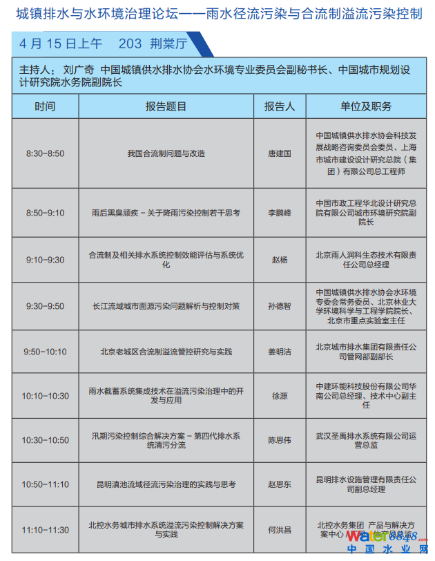 城鎮(zhèn)排水與水環(huán)境治理論壇——雨水徑流污染與合流制溢流污染控制