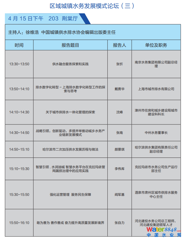 區(qū)域城鎮(zhèn)水務(wù)發(fā)展模式論壇(三) 發(fā)布日期:2023-05-2