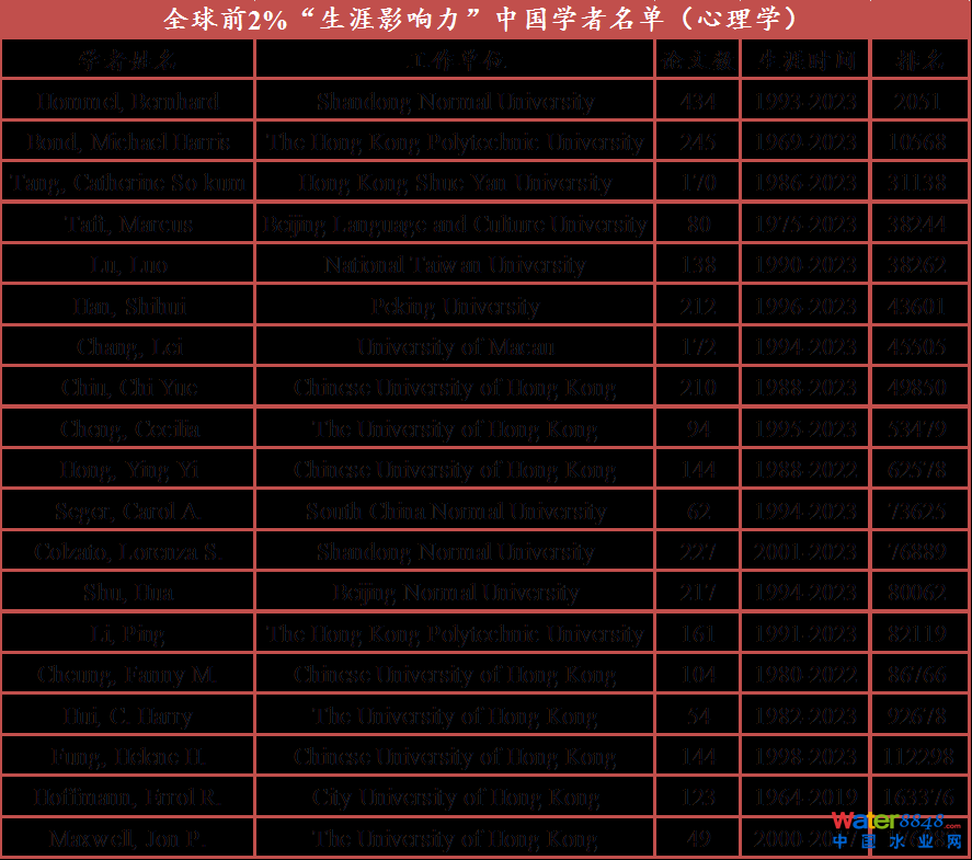在心理學(xué)/認(rèn)知科學(xué)領(lǐng)域”(Psychology & Cognitive Sciences),首先是全球前2%“生涯影響力”中國(guó)學(xué)者榜單。在這個(gè)榜單中,總共包括19名兩岸三地中國(guó)學(xué)者。