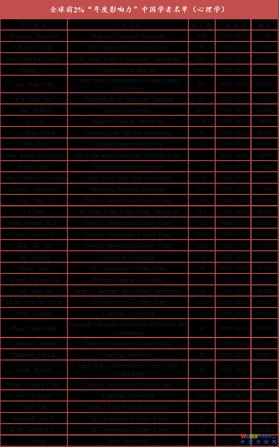 在心理學(xué)/認(rèn)知科學(xué)領(lǐng)域,接下來(lái)呈現(xiàn)的是全球前2%“年度影響力”中國(guó)學(xué)者榜單。在這個(gè)榜單中,總共包括35名兩岸三地中國(guó)學(xué)者