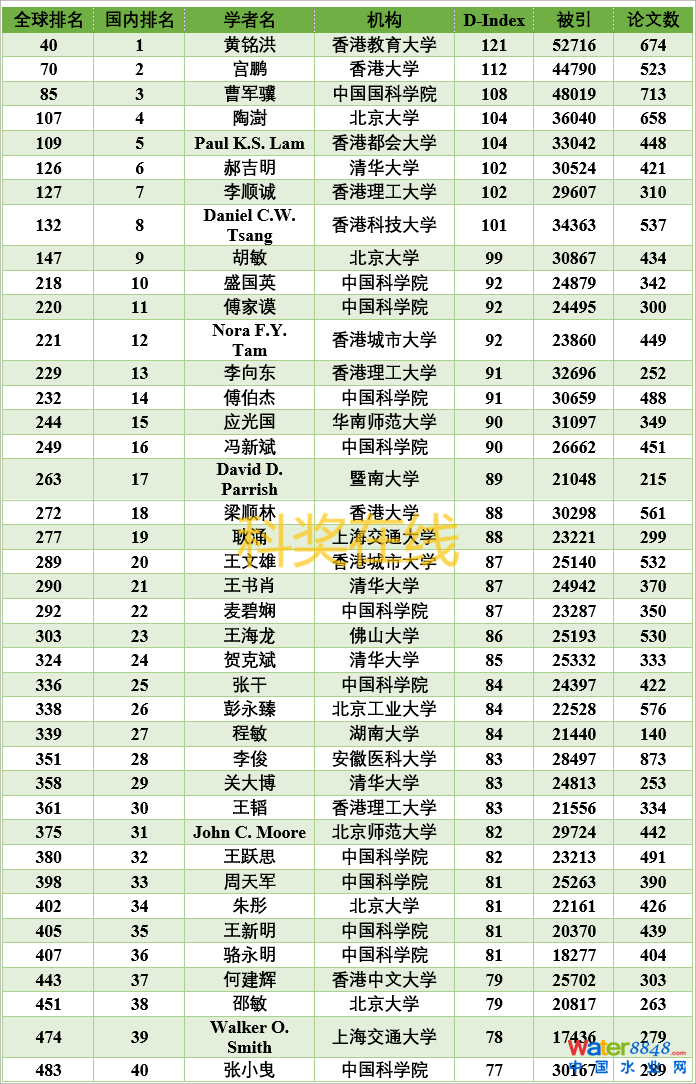 在環(huán)境科學(xué)領(lǐng)域,Research.com對(duì)全球11258名環(huán)境科學(xué)領(lǐng)域的學(xué)者的成果進(jìn)行了充分評(píng)估,中國(guó)有567名學(xué)者入選全球頂尖科學(xué)家排行榜,其中74名學(xué)者位列全體學(xué)者排名的前10%,居全球第三位。就機(jī)構(gòu)來(lái)看,入選最多的為中國(guó)科學(xué)院,其次為北京大學(xué)。