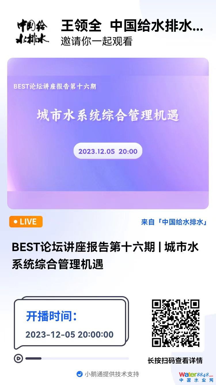 BEST論壇講座報(bào)告第十六期 | 城市水系統(tǒng)綜合管理機(jī)遇 直播時(shí)間:2023年12月5日 (周二)20:00—22:00 2023-12-05 20:00:00 開始