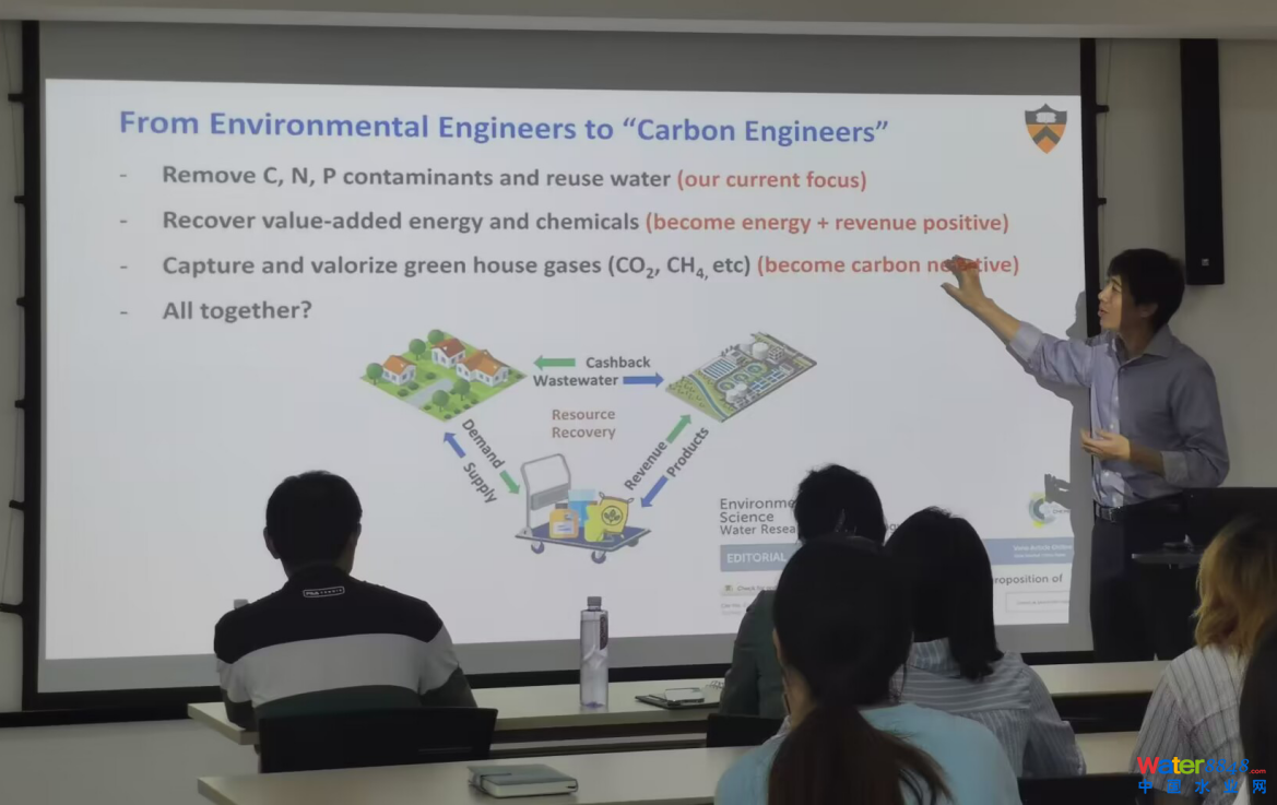 任教授首先簡單介紹了普林斯頓大學(xué)的校園生活和風(fēng)景,隨后談到了他目前在美國的研究內(nèi)容和進展。目前,美國正打算對里克斯監(jiān)獄島重新開發(fā),這勢必會關(guān)系到一些環(huán)境問題。任教授表示,如何去除碳、氮和磷污染物并重新利用水資源是他們團隊目前關(guān)注的課題之一。此外,回收增值能源以及捕獲并量化一些如甲烷、一氧化二氮等溫室氣體也是團隊目前在做的工作。“我們要實現(xiàn)從一名工程師向碳工程師的轉(zhuǎn)變”,任教授如此說道。