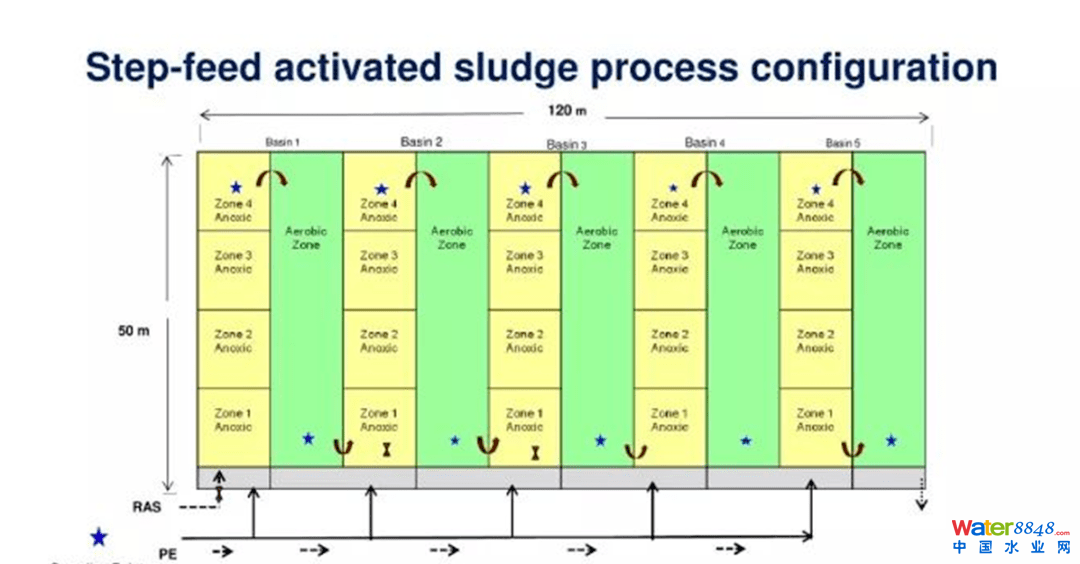 奧地利Strass污水廠是這一理念的先行者,它采用AB+DEMON工藝,在主流中實現(xiàn)極限脫氮的同時、大量有機物送至側(cè)流做厭氧消化,成為世界第一個實現(xiàn)能量自持直至能源輸出的污水廠;新加坡樟宜再生水廠采用分段進(jìn)水SFAS生化工藝,強化生物除磷與厭氧氨氧化并存,短污泥齡和適宜溶解氧同步實現(xiàn)了懸浮游離形態(tài)紅菌的生長,“節(jié)能降耗10%-30%、池容減少10-40%”。