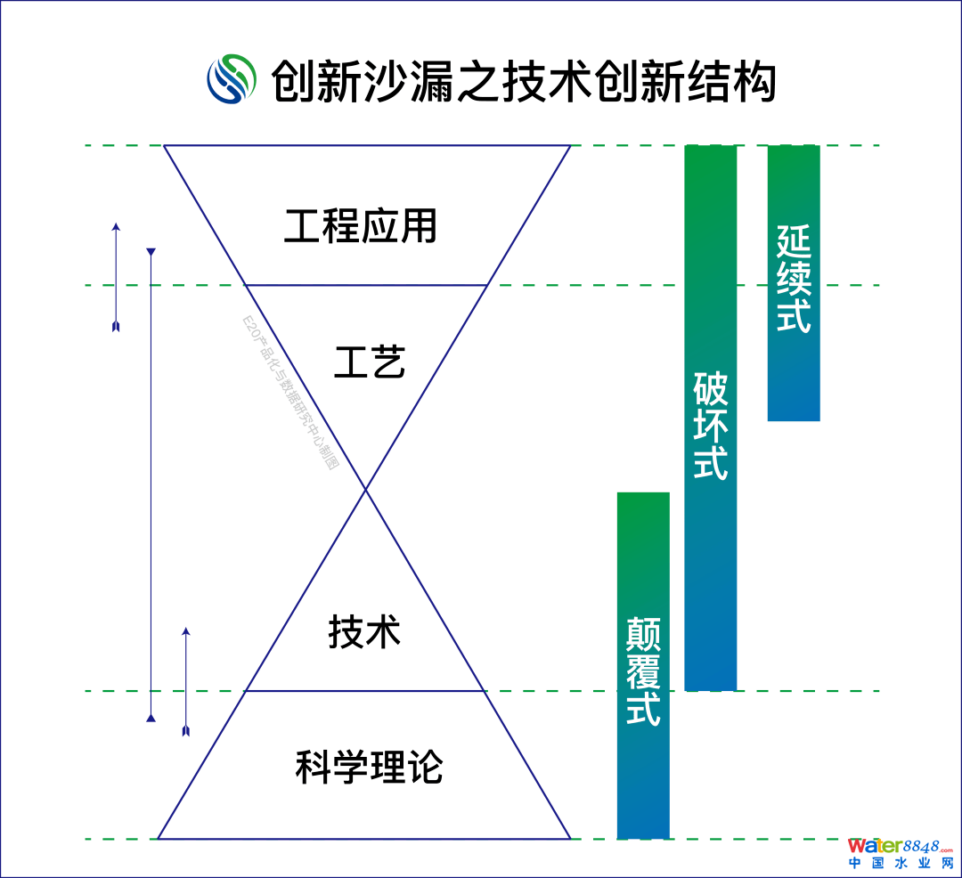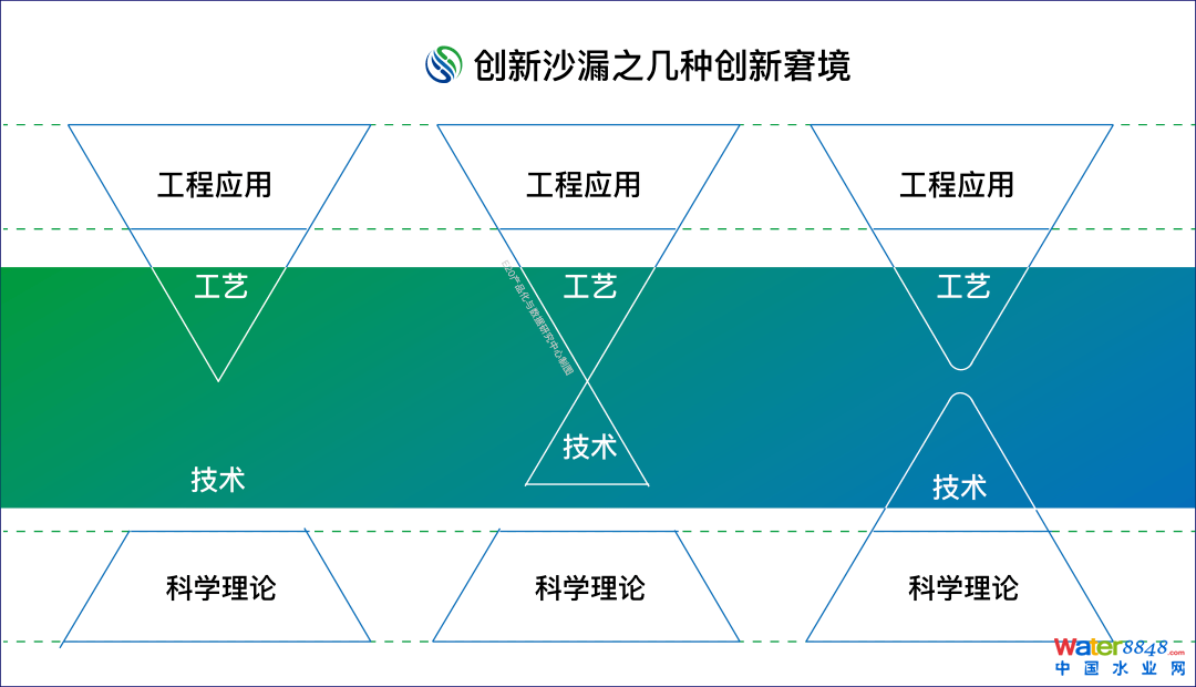 在中國環(huán)保系統(tǒng)內(nèi),“科學(xué)理論層”通常由科研院校獨立負(fù)責(zé),企業(yè)的領(lǐng)域多在工藝技術(shù)層和工程應(yīng)用層。二者間的配合并不理想,呈現(xiàn)為:一邊研學(xué)無用、一邊創(chuàng)新無門。其實質(zhì)一方面是普遍忽視了“工藝技術(shù)”的結(jié)構(gòu)化視野,要么偏上、要么傾下,短了其系統(tǒng)性連接的作用;二則創(chuàng)新系統(tǒng)、創(chuàng)新平臺的稀缺導(dǎo)致三層結(jié)構(gòu)的整合未成顯效,常常失落在“偶然到必然”的途中。