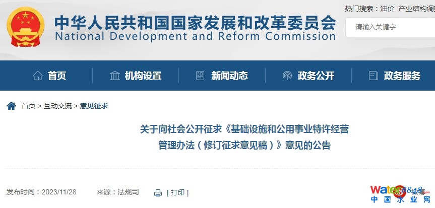 《基礎(chǔ)設(shè)施和公用事業(yè)特許經(jīng)營(yíng)管理辦法(修訂征求意見(jiàn)稿)》發(fā)布