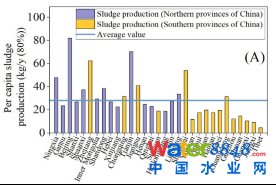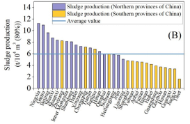 統(tǒng)計結(jié)果顯示,我國人均污泥產(chǎn)量和萬噸污水產(chǎn)生量區(qū)域差異明顯,如2019我國人均污泥產(chǎn)量為28.05kg/a,其中北京、天津和浙江人均數(shù)據(jù)最高,污泥產(chǎn)量分別為81.9、70.462.5 kg/a?傮w而言,中國北方15個省份的平均人均污泥產(chǎn)量30.65 kg/a比南方省份(25.84kg/a)高18.6%。與之類似的是,2019年中國每萬污水處理污泥產(chǎn)量為5.94t,其中北方地區(qū)15個省的平均污泥產(chǎn)量(7.36t)遠遠高于南方16個省份5.07t)。