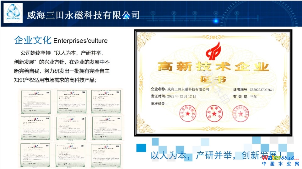 核心提示:威海三田永磁科技有限公司 來源:《中國給水排水》