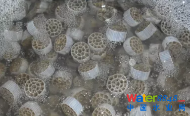 載體在水中的碰撞和剪切作用,使空氣氣泡更加細(xì)小,增加了氧氣的利用率。另外,每個(gè)載體內(nèi)外均具有不同的生物種類,內(nèi)部生長一些厭氧菌或兼氧菌,外部為好氧菌,這樣每個(gè)載體都為一個(gè)微型反應(yīng)器,使硝化反應(yīng)和反硝化反應(yīng)同時(shí)存在,從而提高了處理效果。