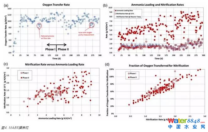 在9個(gè)月的測(cè)試期內(nèi),MABR膜顯示出穩(wěn)定的氧氣傳送速率,且大部分傳遞的氧氣都用于硝化作用。結(jié)果顯示MABR混合工藝能對(duì)現(xiàn)有生物工藝做出顯著改善,同時(shí)減少了污水廠(chǎng)的能耗。