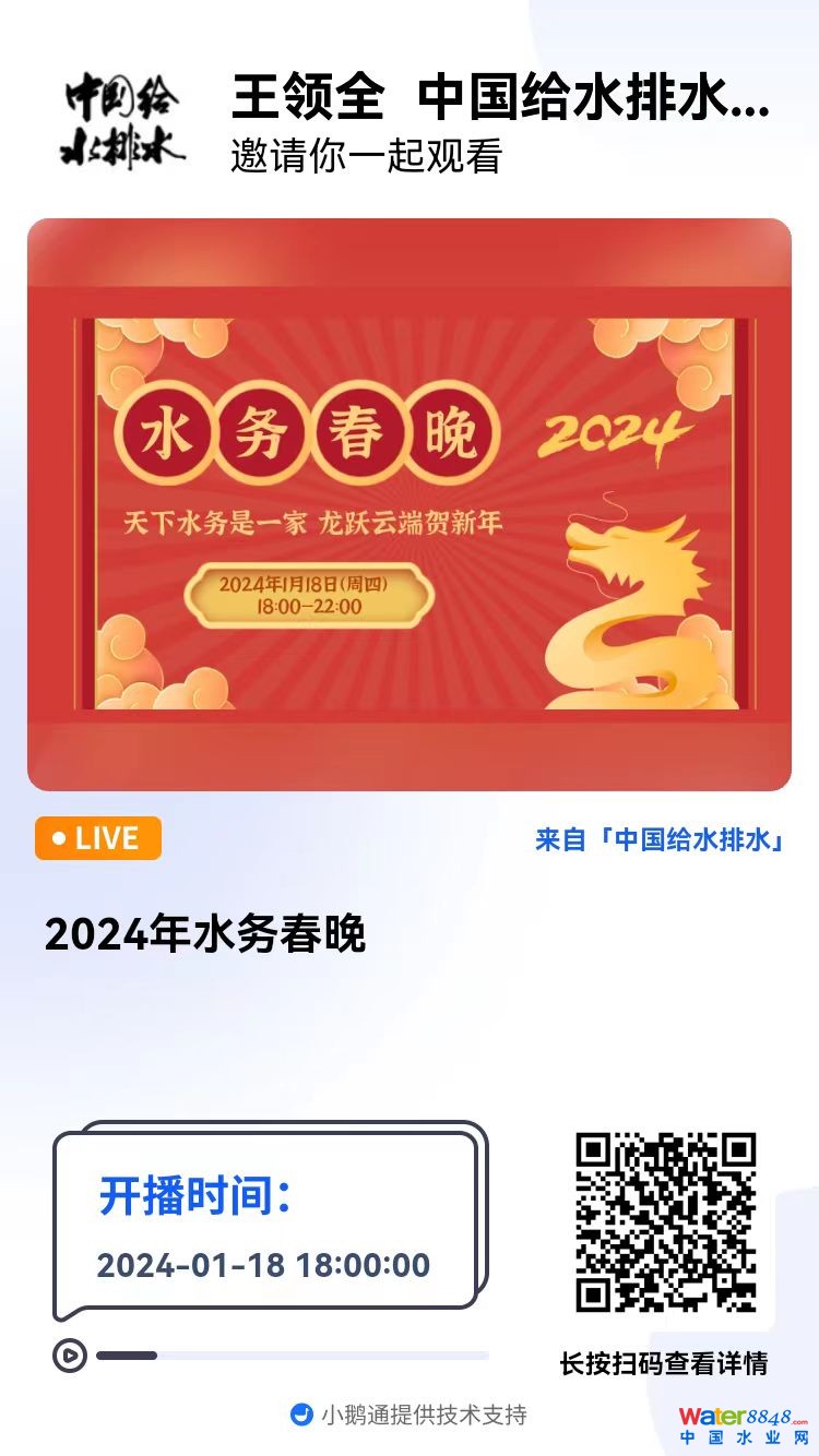 2024年水務(wù)春晚 直播時(shí)間:2024年1月18日(周四)18:00—22:00 2024-01-18 18:00:00 開始