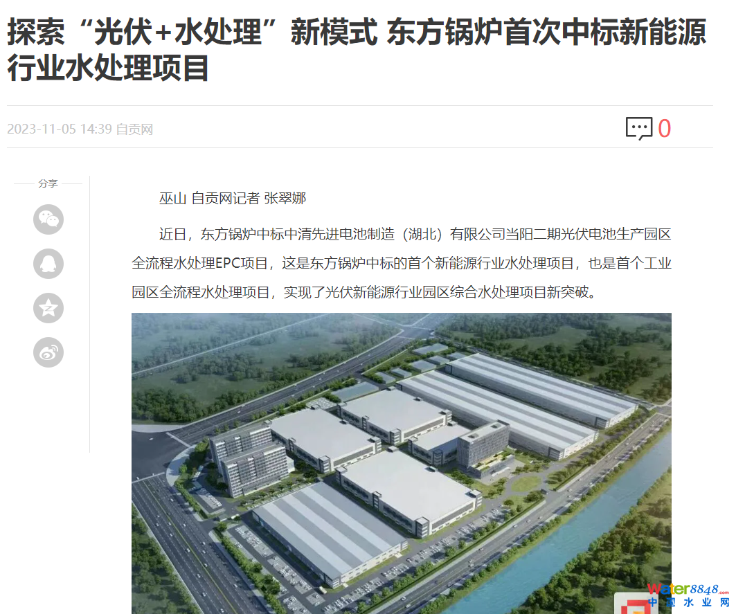 【自貢網(wǎng)】探索“光伏+水處理”新模式 東方鍋爐首次中標新能源行業(yè)水處理項目