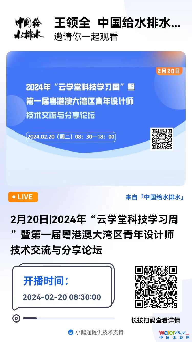 核心提示:中國給水排水直播預(yù)告(第一屆粵港澳大灣區(qū)青年設(shè)計(jì)師技術(shù)交流論壇) “醒年盹、學(xué)好習(xí)、開新篇”2024年“云學(xué)堂科技學(xué)習(xí)周”暨第一屆粵港澳大灣區(qū)青年設(shè)計(jì)師技術(shù)交流與分享論壇