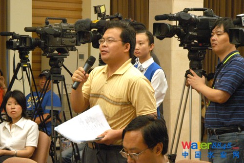 8月22日上午10時(shí),國務(wù)院新聞辦公室舉行新聞發(fā)布會(huì),請(qǐng)建設(shè)部副部長仇保興介紹中國城鎮(zhèn)水務(wù)及第五屆世界水大會(huì)等方面情況,并答記者問。圖為中國給水排水雜志記者提問。(中國政府網(wǎng) 袁喆/攝)