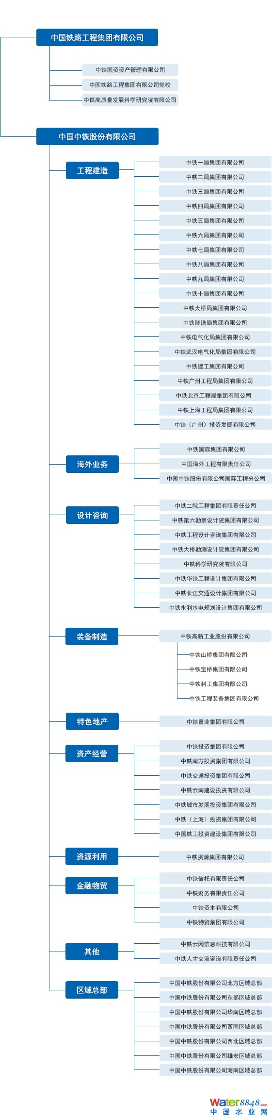 中國中鐵擁有一百多年的歷史源流。1950年3月為中國鐵道部工程總局和設計總局,后變更為鐵道部基本建設總局。1989年7月,經國務院批準撤銷基本建設總局,組建中國鐵路工程總公司。2000年9月,與鐵道部實行政企分開,整體移交中央大型企業(yè)工作委員會管理。2003年5月由國務院國資委履行出資人職能。2007年9月12日,中國鐵路工程總公司獨家發(fā)起設立中國中鐵股份有限公司,并于2007年12月3日和12月7日,分別在上海證券交易所和香港聯(lián)合交易所上市。2017年12月由全民所有制企業(yè)改制為國有獨資公司,更名為中國鐵路工程集團有限公司。