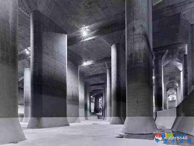 壓力調節(jié)式蓄水池是防洪系統(tǒng)的最后一站。蓄水池中有59根鋼筋混凝土柱,可以減緩水的流速,加固蓄水池的頂部。