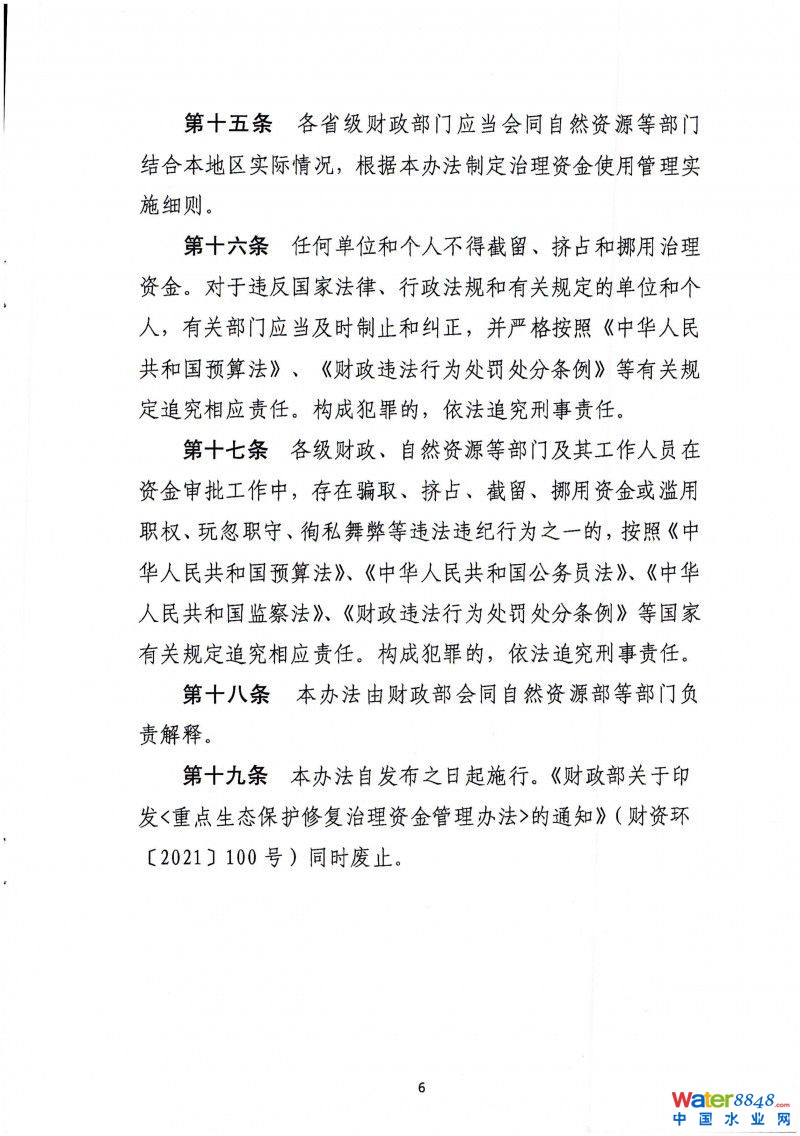 財(cái)政部修訂《重點(diǎn)生態(tài)保護(hù)修復(fù)治理資金管理辦法》