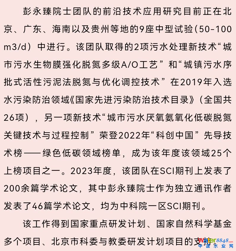 長期從事污水生物處理新技術(shù)和新工藝開發(fā)、城市污水處理提質(zhì)增效、城市水環(huán)境和水生態(tài)綜合治理等領(lǐng)域研究。先后主持國家自然科學(xué)基金優(yōu)秀青年基金、國家重點研發(fā)計劃課題等科研項目;已發(fā)SCI收錄論文100余篇,ESI高被引論文5篇,H因子42;創(chuàng)新成果獲環(huán)境保護科學(xué)技術(shù)一等獎(排名第二)和北京市科學(xué)技術(shù)獎科技進步一等獎(排名第三)等省部級獎勵。