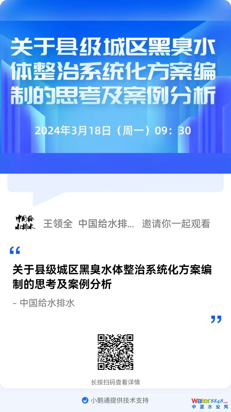 關于縣級城區(qū)黑臭水體整治系統(tǒng)化方案編制的思考及案例分析 直播時間:2024年3月18日(周一)9:30 2024-03-18 09:30:00 開始
